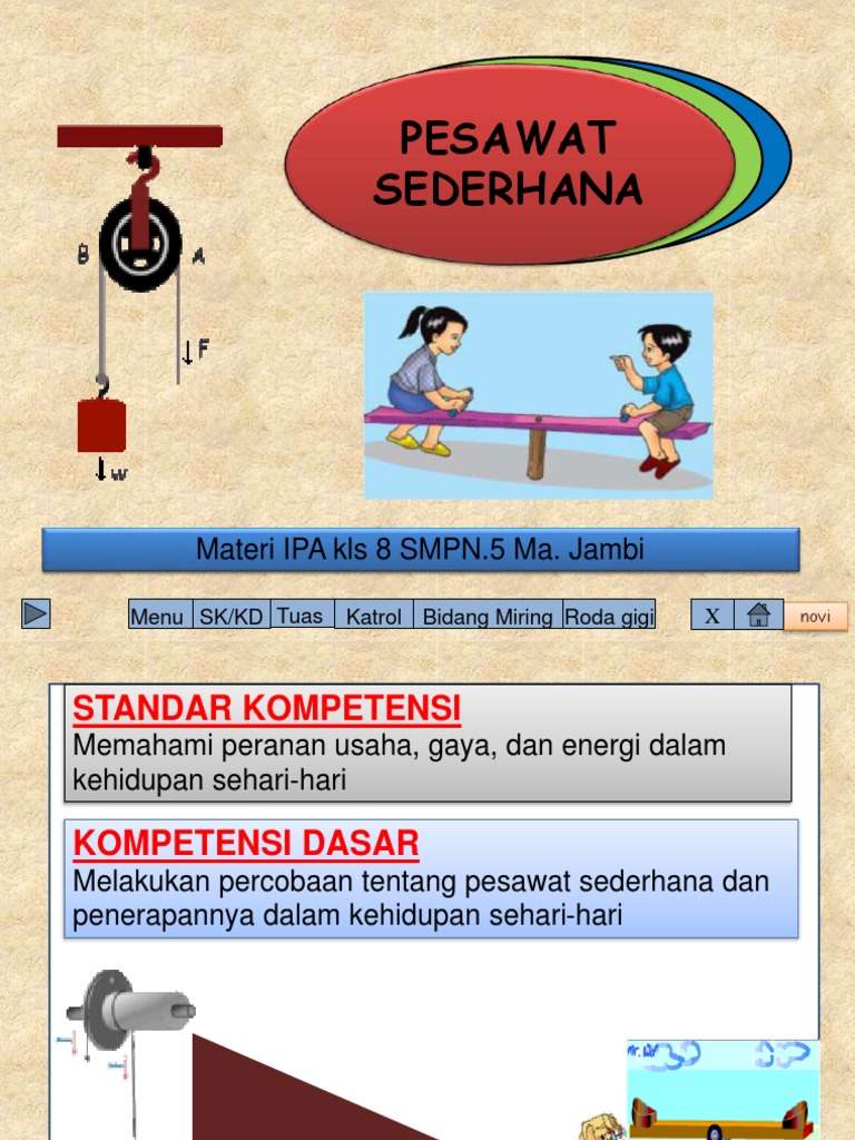 Jun 21, 2021 · pesawat sederhana ialah alat yang dapat digunakan untuk mempermudah suatu pekerjaan tanpa memperkecil usaha.